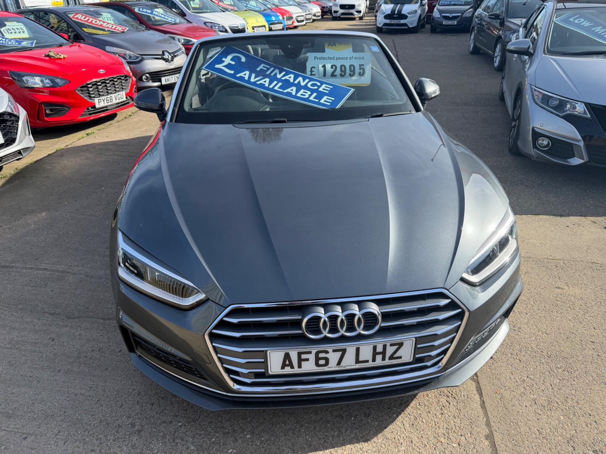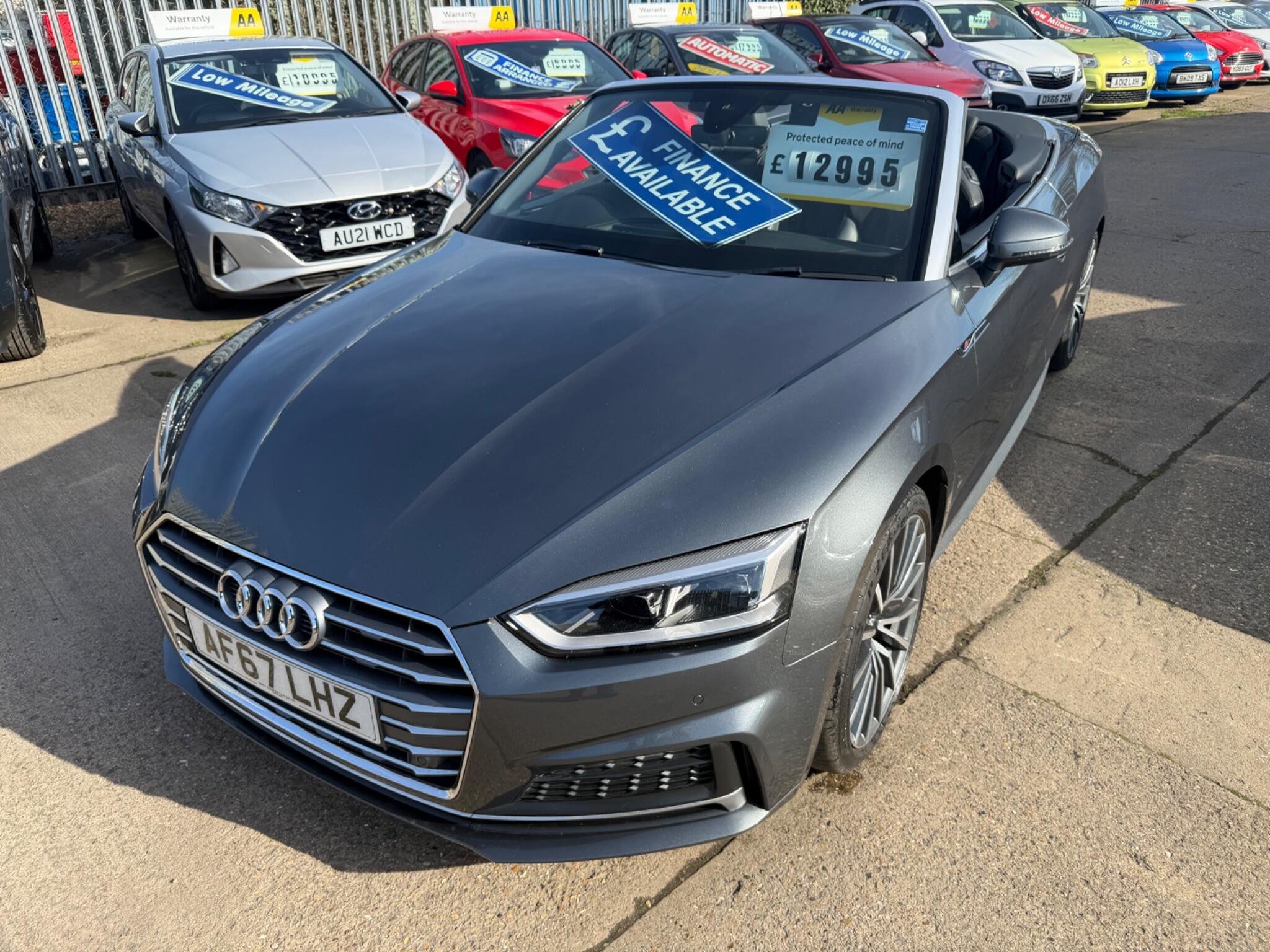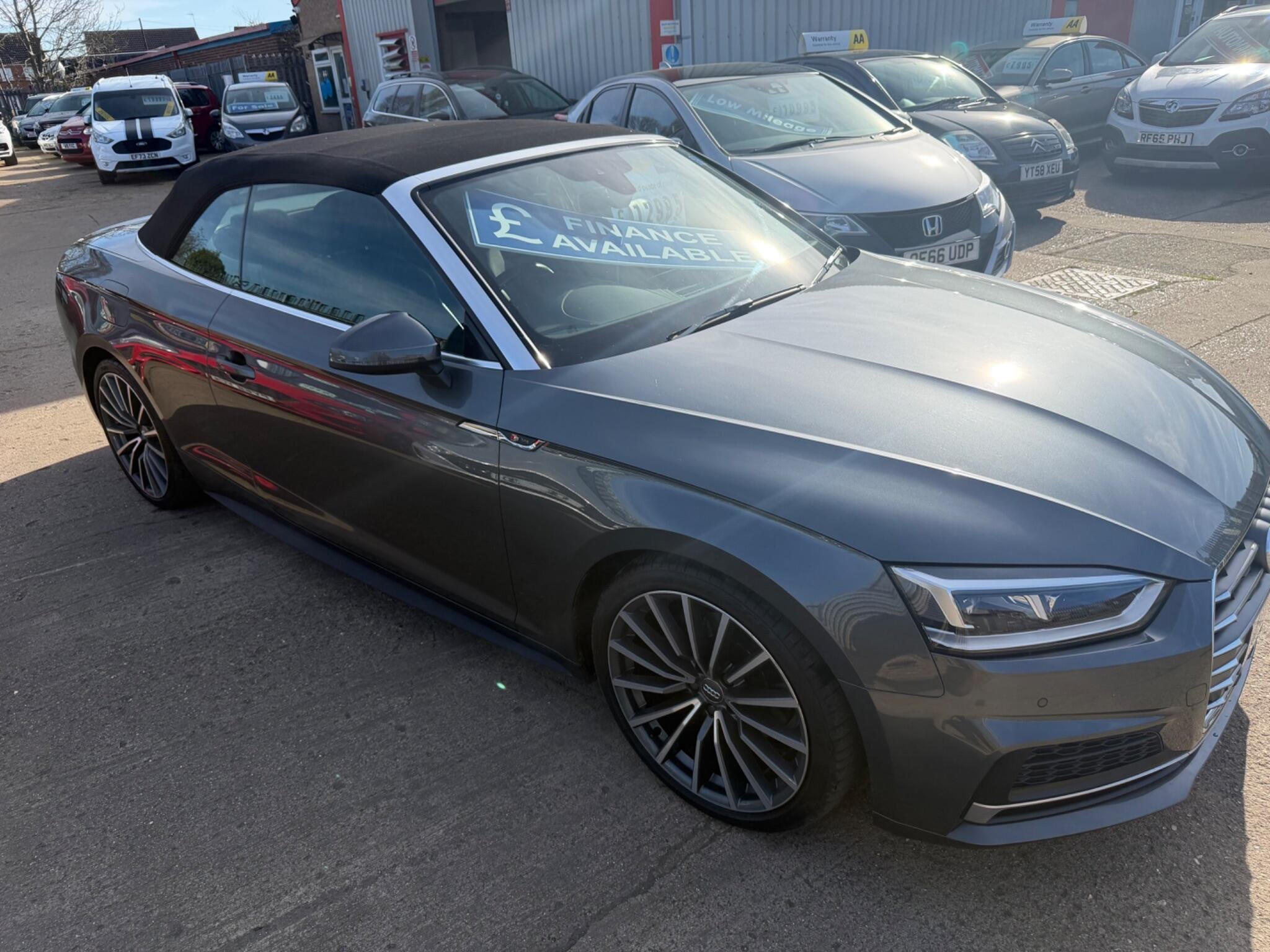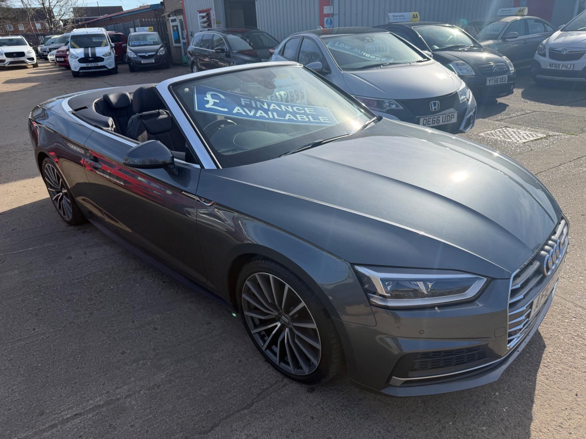 LOOK AT THIS SUCH GREAT VALUE!WHAT A CAR FOR THE MONEY!,This 2017 Audi A5 Cabriolet TFSI S line offers a superb ownership history, having been looked after by only two owners. As a Euro 6 compliant vehicle, it features a 2.0 litre petrol engine and benefits from the desirable S line trim. You'll appreciate the convenience of Keyless Go for effortless entry and starting, alongside the comfort of Deluxe 3-Zone Climate Control and Heated Front Seats. Navigating tight spots is made simple with the Audi Parking System Plus, incorporating front and rear sensors, while the striking LED Headlights with Dynamic Rear Indicators ensure excellent visibility and a distinctive presence.