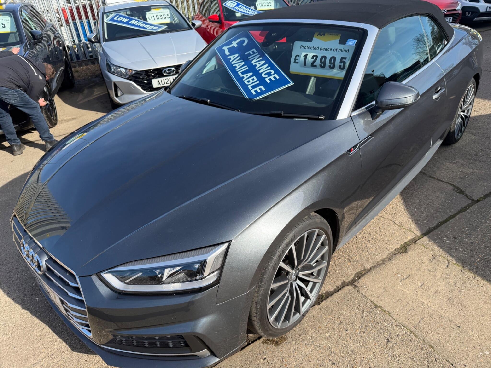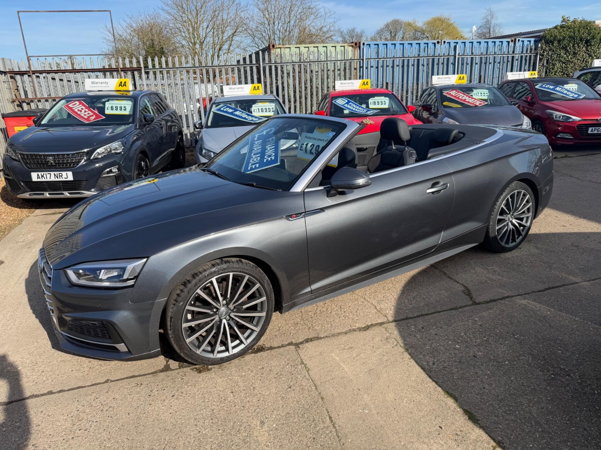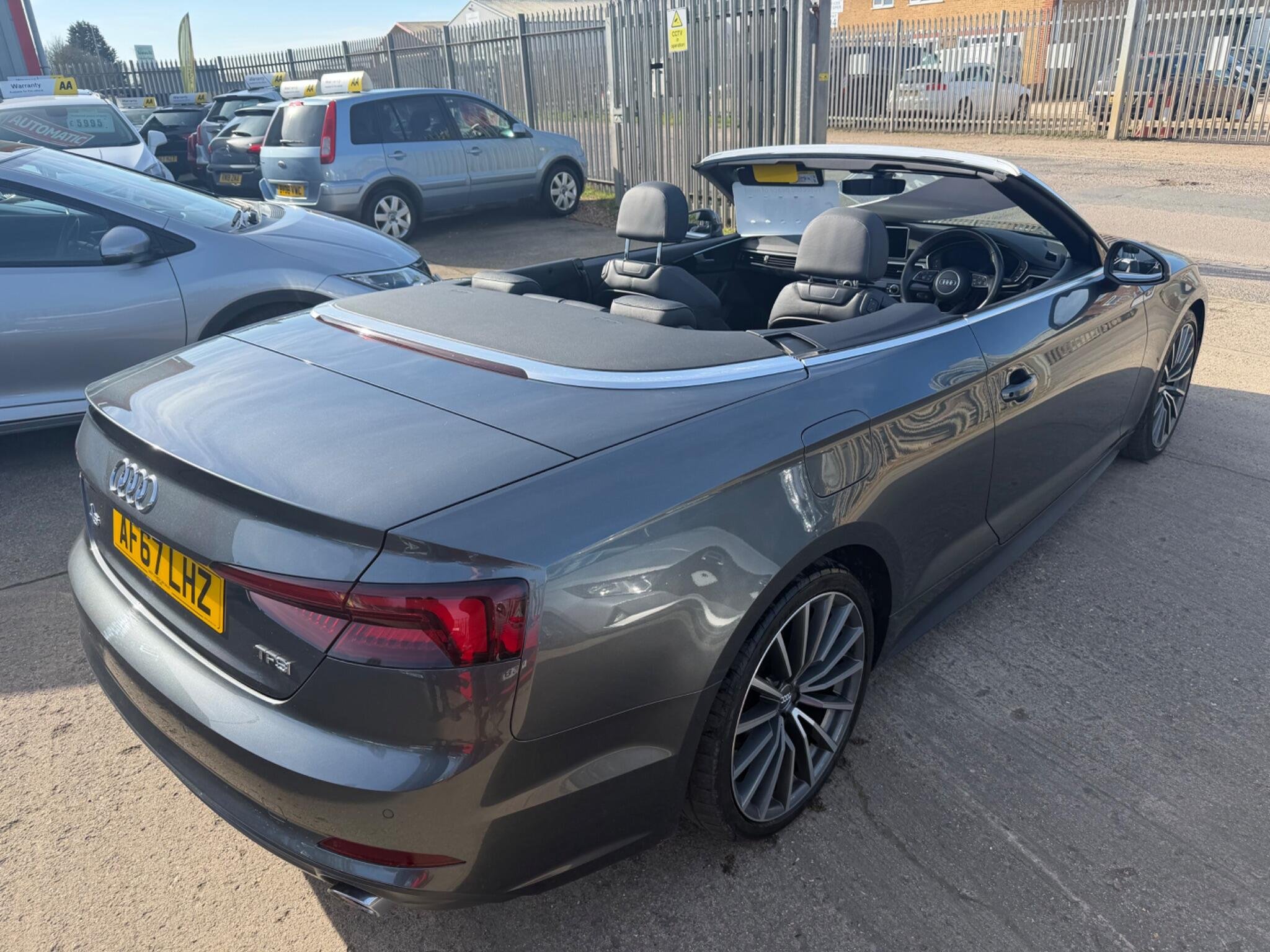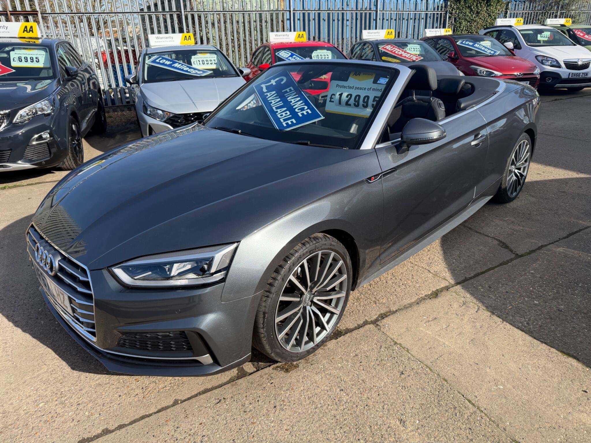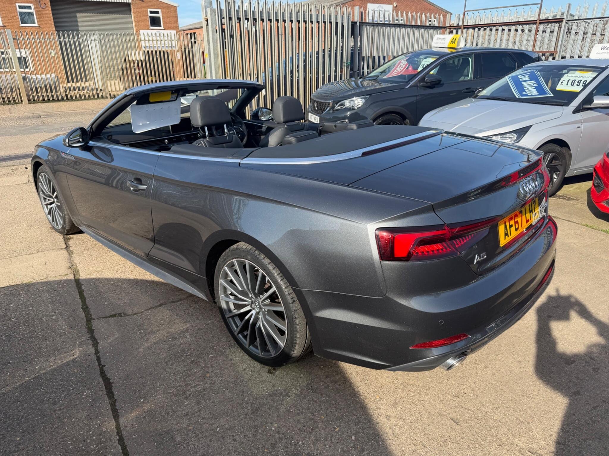 LOOK AT THIS SUCH GREAT VALUE!WHAT A CAR FOR THE MONEY!,This 2017 Audi A5 Cabriolet TFSI S line offers a superb ownership history, having been looked after by only two owners. As a Euro 6 compliant vehicle, it features a 2.0 litre petrol engine and benefits from the desirable S line trim. You'll appreciate the convenience of Keyless Go for effortless entry and starting, alongside the comfort of Deluxe 3-Zone Climate Control and Heated Front Seats. Navigating tight spots is made simple with the Audi Parking System Plus, incorporating front and rear sensors, while the striking LED Headlights with Dynamic Rear Indicators ensure excellent visibility and a distinctive presence.
